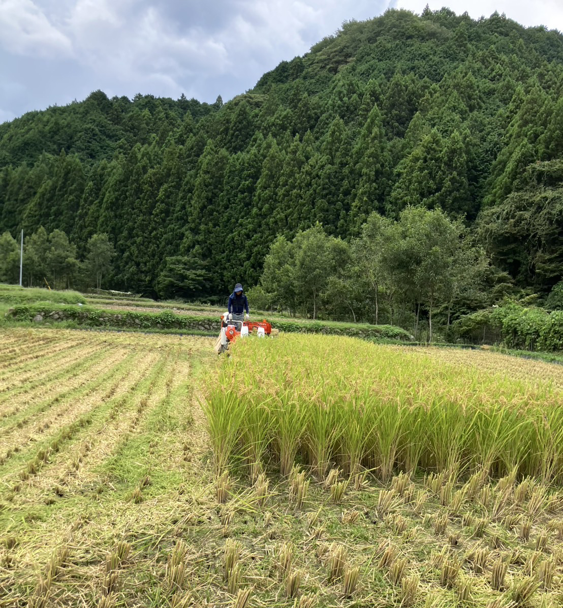 今年は極端な雨不足と高温に見舞われる中での米作りでしたが、9月7日(日)にようやく稲刈りを終えることができました。我が家の田んぼは中山間地にあり、山あいを流れる豊かな川から直接水を引いているため、市内の一部の田んぼで見られたような水不足に悩まされることはありませんでした。そのおかげで、4月末の田植えから始まった今年の米作りは比較的順調だったと言えます。ただ、連日の暑さの中、炎天下の草刈りは厳しく、夜明けと同時に圃場に出て作業をせざるを得ませんでした。それでも、無事に収穫を迎えたいま、その苦労もすべて報われた思いがします。